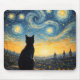Elevate your desk with the enchanting "Starry Night Overlook" Mouse Pad, showcasing a beautiful black cat silhouetted against a vibrant, Van Gogh-inspired starry sky. This captivating scene captures a majestic black feline perched above a charming European town, where lights softly glow in the twilight. The dynamic swirls of the night sky meet the peaceful serenity of the cityscape, creating a truly magical visual experience.
