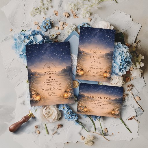 Starry Night Rustic Meadow Wedding Inbjudningar