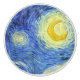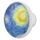 En rund keramisk knopp med Starry Night (1889), en oljemålning av Vincent Van Gogh (1853-1890). Skiljer åsikten utanför fönstret från Van Goghs rum vid sanatoriet i Saint-Remy-de-Provence, Södra Frankriket. En snurrande natt himlar med ett halvmåne måne.