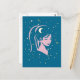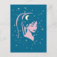 En romantisk och surrealistisk design med stjärnor, måne och en kvinnobild.