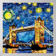 Den här vackra designen visar staden London England i stil på Van Gough's Starry Starry Night-tavlan.