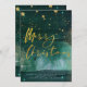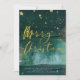 Stryk vinterkortet God jul helgdag med elegant guld-skriptkalligrafi. Den här chicen och den moderna designen kombinerar vattenfärgstreck i grönt, guld-stjärnor, glashglöd, guld-damm och en mistskog. Den är handskriven med God jul och mallen är inställd så att du kan lägga till personligen hälsning. Icke-fotodesign och enkel att anpassa för vänner och familj samt företagsklienter och kunder. Bläddra i butiken för att hitta alternativ färg och hälsning.