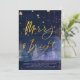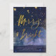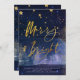 Starry Winter Night Merry och Bright Blue and Guld Julkort