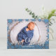 God jul och namn i chic med vita bokstäver, ladda bara upp ditt favoritfoto. Det är enkelt att skicka julhälsning och helgdag glädje till familj och vänner med de här utspridda blå stjärnorna gräns helgdag-fotokorten. EDITABLE färg på baksidan bakom snö. Lägg till fler foton eller mer information på baksidan med länken CUSTOMIZE ytterligare. Välj Projektionsyta för tyngsta pappra och HD-kvalitet för bästa fotokvalitet.