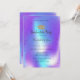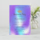 Guld glitter studentmössa och stjärnor på holografisk bakgrund.