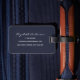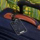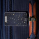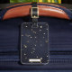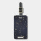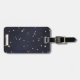 Personligens bagagemärke med guld star-mönster på en marin blå bakgrund.