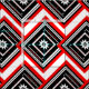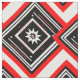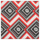 Här är en modern contemporary med rött, vitt och svart tyg i ett abstraktens geometriska mönster av rektanglar, fyrkanter, linjer och stjärnor omgivna av ett styrmotiv från en chevron.