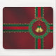 Golden klockor hänger i mitten av en grå andedräkt av mörk löv och röda ädelstenar för bär, genomskärt av rosett band av rött och grönt med guld stjärnor. Som ett Julklapp inslaget i mörk rött och bundet med ljust strippat rosett band.