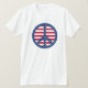 Ett rött, vitt och blått stars och stripes på en fredssymbol T-shirt.