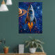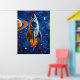 Det är ett litet steg för inredning, ett jättehopp för din vägg. Denna lekfulla affisch visar en klassisk raket som flyger genom en galax av skimrande stjärnor och virvlande planeter. Med djärva, intensiva färger och tecknad charm är den perfekt för barnrum, kosmiska dagdrömmare eller någon som vill lägga till en touch av sci-fi-nostalgi i sin miljö.