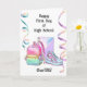 En personlig första dag med högskolekort till henne. På framsidan finns en ryggsäck, en bärbar dator och söta skor tillsammans med några färgstarka strömsare på framsidan som du enkelt kan anpassa med namn. Meddelandet om invändigt kort kan också redigeras så att det verkligen är ett slags kort-keepy för din dotter, brorson, syster osv. Detta är ett underbart sätt att stödja och uppmuntra henne när hon startar en ny skola för högskolan.