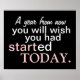 Om ett år önskar ni att ni hade börjat i dag. Börja inspirerande poster idag. Detta är en motiverande poster. Den har en svart bakgrund med mjukt grått och rosa typografi. Uppmuntra den personen du känner som behöver lite skjuts framåt. Det här kanske är perfekt för dig också.