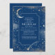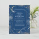 Den blå marininbjudan har en stillastående design, adorerad med avlägsna galaxer, stora planeter, en fantastisk skjutstjärna och ett känsligt krescerande måne. Den här mallen är designad för att hedra en älskad som alltid har strävat efter att röra himlen, som tycker om att stirra, och som har funnit inspiration och glädje under ett stjärnfyllt himmel underverk.