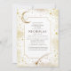 Den här elegantens vita begravningsinbjudan hedrar på ett vackert sätt de berömda underverk som fångade din älskade. Dess utformning förenar på ett konstgjort sätt den fredliga alluren av avlägsna galaxer, ett ljusstrålande måne och en snabb skjutstjärna. Varje detalj återspeglar själen hos en drömmare som alltid fann fred och glädje i den stora expansionen av natten himmel. Den här inbjudan firar ett liv som lever med ögon twinkling med stjärnor.
