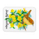 En magnet som dekorerats med en Carolina Wren-fågel på en blommande gult Jessmine blommar bush illustreras med bläck och vattenfärg. Inspinerad av den statliga fågeln och statsblomman i South Carolina. Du kan redigera eller ta bort texten efter behov.