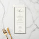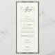 STATELY CALLIGRAPHY, black onyx and soft ecru, wedding menu. Features, elegant black calligraphy and serif typography and stripe pattern frame detail. Colors can be customized by using the design tool feature.