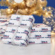 Massachusetts slår pappert. En grafisk design som firar Massachusetts identitet med typografi som har den amerikanska flagga ikonrött, vitt och blått.