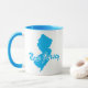 Visa din stolthet över hemmet med dessa t-shirts och andra artiklar som har en blå kontur av läget New jersey med namn inuti formen.