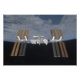 Internationell rymden Station, som föll tillbaka av rymdens och jordens mörker.