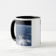 Internationell rymden Station föll tillbaka av en blå och vit jord.