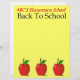 Anpassa enkelt detta lysande och trevliga brevhuvud i anpassningsbarna med vilken skola som helst eller vilken lärarinna som helst i namn. Originalillustration med tre röda äpplen med grönt löv vid grund. Det finns massor av kopieringsutrymme till skrivan senare. Underbar personlig presentidé för lärare och skoladministratörer. back to school är en del av utformningen av äpplen. Gultens bakgrund färg kan enkelt ändras.