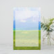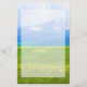 En impressionist stil sommålning av en grönt betar med Colorado Rockies, skapar en härlig kuliss.