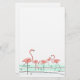 Mid-sekels inspirerade design med en återpekande med en grupp rosa flamingos som står i aqua vatten mot en vit bakgrund. Ett anpassade som du kan anpassa med egen text, bilder och egna idéer. En originalbild för digital konst skapat av Jess Perry på QuirkyChic Retro.