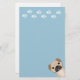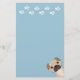 Enkla ljusa lyckliga stationära presentera en fodra av vittassavtryck längs en bästa och gullig mops som kikar från den nedersta höger, tränga någon.