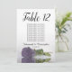 De vackra bordsnumren gör det enkelt för dina gäster att hitta sina platser på bröllopsmottagningen. De har en enkel men ändå elegant utformning med manusjettbokstäver och en enda dammig lila färgad ro som ljuger på sin sida och reflekterar i vatten. Kortet innehåller ett sittplatskort med 10 namn. Det finns också utrymme för parets datum namn och bröllop. Det här kortet finns i många storlekar och är större än våra standardkort för bordsnummer.