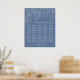 Det här sätesschemat i elegant bröllop bord har en delikat blommigt, prydnadsdesign med blommor, fåglar och löv på dammig blå bakgrund. Texten kombinerar handskript och serif typsnitt för en snyggt och ett modernt utseende. Perfekt för vinter- eller höstfallbröllop.
