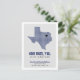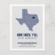 Berätta för dem vart du ska med det här flyttan-meddelandet. Har Texas i ett rutnät mönster med ett hjärta som du kan flytta för att visa var ditt nya hus är. Baksidan innehåller ett meddelande som uppmuntrar människor att se dig för kom. Kommer i bränd orange, maron, rött, statlig flagga-blått, grönt, lila, orange, svart och gult - mest baserat på statlig färg. Matchande produkter är tillgängliga.