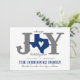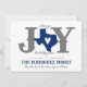 Den här julhelgen är enkel att önska vänner och familj från Texas. "O" i glädje ersätts av Texas med ett hjärta som är avskuret från mitten. Western-stil-bokstäver parade med handskriven text. Anpassa framsidan med din familj namn och baksidan med ditt favoritfoto. Med design kan du välja egen färg. Kommer i rött, grönt, blått, lavender, akvu, maron, bränd orange, guld och silver. Matchande produkter är tillgängliga.
