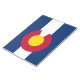 Denna utformning är utmärkande för delstaten Colorado, som är ett område i Westerna Förenade Stater som omfattar större delen av södra Rocky mountains samt den nordöstra delen av Colorado Plateau och den westerna kanten på Underbara slätter. Det kallas ibland för den centraliserade staten, och dess motto är " nil sinine numine", som elaket " ingenting utan förtjänst". Flagga var designad av Andrew Carlisle Carson 1911. Den blå delen av flagga är avsedd att representera det klara himlar, guld står för den ljusa solljus som staten har, det vita representerar bergsområdena med snö och det röda representerar den torra jorden. Brev C i flagga står naturligtvis för Colorado. Colorados huvudstad är Denver, som också är statens största stad. Andra större städer och städer i Colorado är Colorado Vår, Aurora, Fort Collins, Lakewood, Thornton, Arvada, Westminster, Pueblo, Centennial, Boulder, Greeley, Longmont, Loveland och Broomfield.