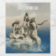 Tre sjöjungfruar vid statyer sitta vid sten i havet. Du kan anpassa texten till suddiga Sirens.