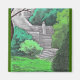 Statyn dam i en italiensk parkerings trädgård. Grått-staty från en halvvägs nedströms grått trappor i en italiensk park som har mycket grönt träd och löv. Den vackra miljön är fredlig och meditativ. Concept och färg av Lee Serenethos, Teckning av Jim Monahan.