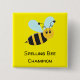 Ljusstark och färglös knapp visningar en gult och svart humla. Under texten står "Stavning Bee Champion" i svart teckensnitt. Beställ idag!