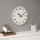 En traditionell väggklocka, men den visar ord i stället för siffror.