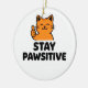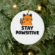 Whether you're hanging it on a holiday tree, displaying it in your office, or gifting it to a fellow cat lover, this high-quality ceramic ornament serves as a wonderful daily reminder to stay optimistic. Its clean white background makes the vibrant ginger cat and bold typography pop, ensuring it catches the eye from any angle.