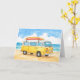 This greeting card features a watercolor style portrait of a yellow hippie van with a surf board on top and the message "stay salty" written on the front bumper.