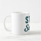 This 'Stay Salty' coffee mug features teal blue lightly distressed mixed vintage and modern fonts, creating a playful slogan. Whether you're salty from the sea breeze, or full of salty attitude, this graphic print coffee mug will serve up a side of sarcasm with your cup of Joe.