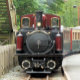 Wales, det lilla tågens land. En vackert bevarad röd tåg och grönt transporterar passagerarnas fullt.