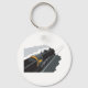 En svart ånga tåg längs spåren. Den här designen ser ut att vara effektiv i den här nyckelkedjan