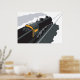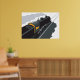 En svart ånga tåg längs spåren. Den här designen ser ut att vara verkligen på dessa Poster