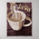 Varma väggen med den här poster av en vintage, rustik grafik av ett ångande mugg av kaffe i jordton, kaffe färg med texten " Java ".