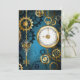 Turkos, texturerad, steampunk bakgrund med släp och guld, silver nyckel och klocka. Steampunk stil.