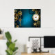 Steampun turquoise Background with Gears Poster