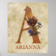 Poster utskrift med en Steampunk-blommigt och det tillförlitliga metall utseendet brev A på vintagens snöre och församlingens bakgrund. Finns i format för utskrift och digital hämtning.