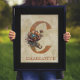 Poster utskrift med en Steampunk-blommigt och det tillförlitliga metall-utseendet brev C på vintage snöre och parchment-bakgrund. Finns i format för utskrift och digital hämtning.