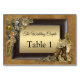 Gothic - Guld & mässing Steampunk-bröllop på suede-struktur med en mörk läderram - numrerade och namngivna kort för varje bord