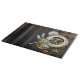 Antikaldagaler med guld och släpredskap, dekorerade med mekanisk dragonfly på brun, strimlad bakgrund. Steampunk.